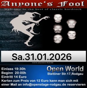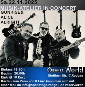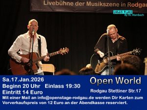 Der Einlass in die Open-World-Halle in der Rodgauer Stettiner Str.17 beginnt am Sonntag, den 28.12.2025 um 18:30 Uhr und die musikalischen Präsentationen um 19 Uhr.