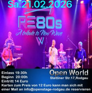 Die New Wave-Tribute-Band RE80s nimmt Euch mit auf eine Reise in die Vergangenheit, genauer in die frühen bis mittleren 1980er Jahre, als die Klamotten quietschebunt waren (bis auf die Socken, die waren weiß), als Zauberwürfel uns in die Verzweiflung trieben, man stolz mit seinem Joystick seine pixeligen C64-Games zockte, MTV schillernde Musikvideos populär machte und – vor allem – unverwechselbare Musik durch die Kopfhörer des Sony Walkmans schallte.